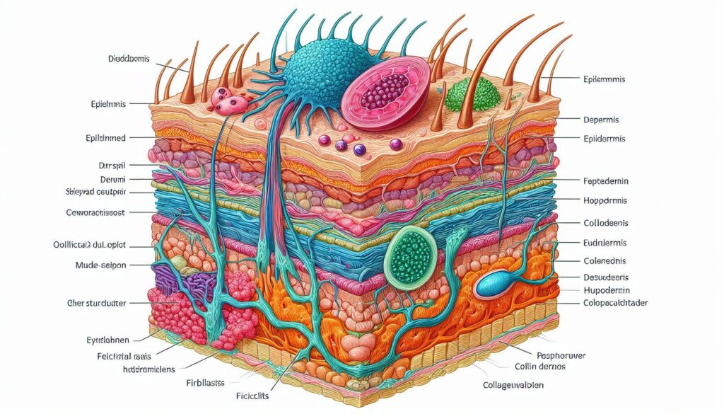 En dışta yer alan epidermis, çevresel faktörlere karşı fiziksel bariyer görevi görür. Epidermis çoğunlukla keratinositlerden oluşur ve bu hücreler; bazal hücreler (BC), spinoz hücreler (SC) ve granüler hücreleri (GC) içerir. Ayrıca, UV’ye dirençli melanositler ve bağışıklık sisteminde görev alan Langerhans hücreleri (LC) de bu tabakada bulunur.
